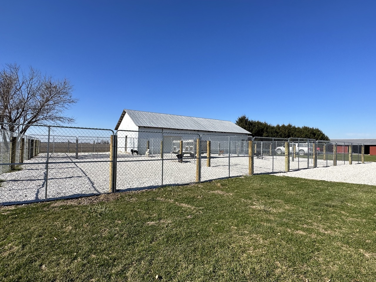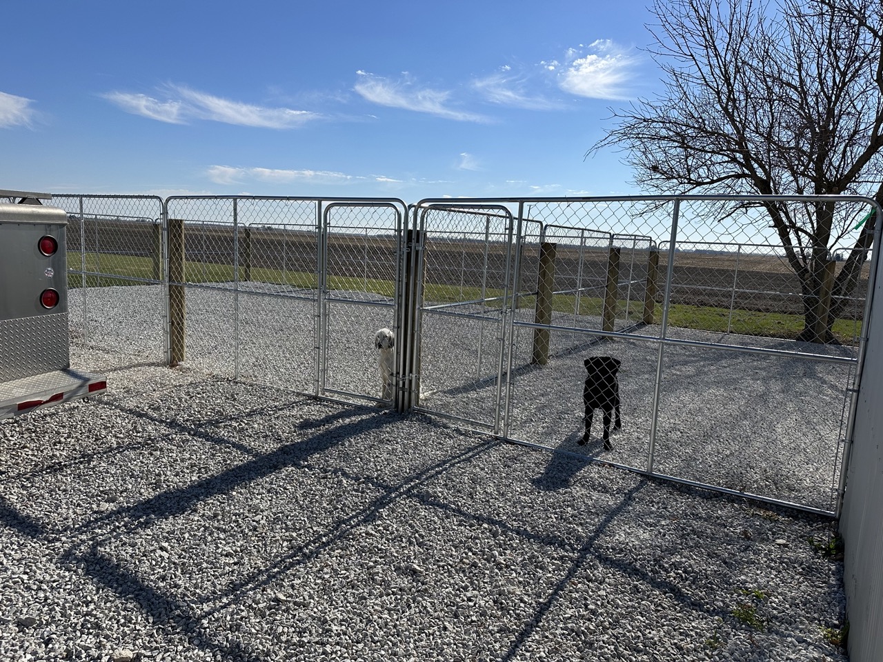 outside view of the kennel and airing yards at Rural Route Retrievers Fairmount Illinois